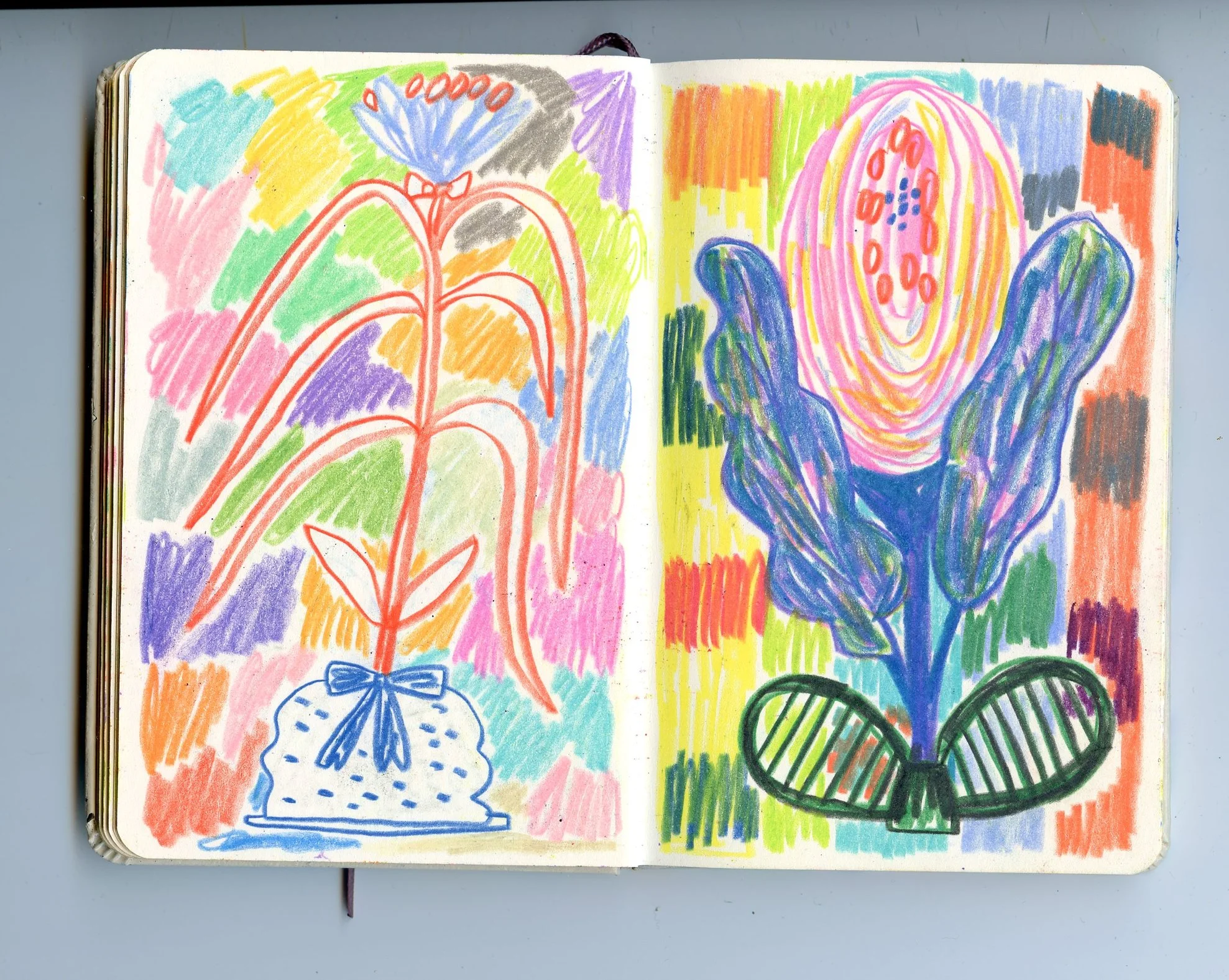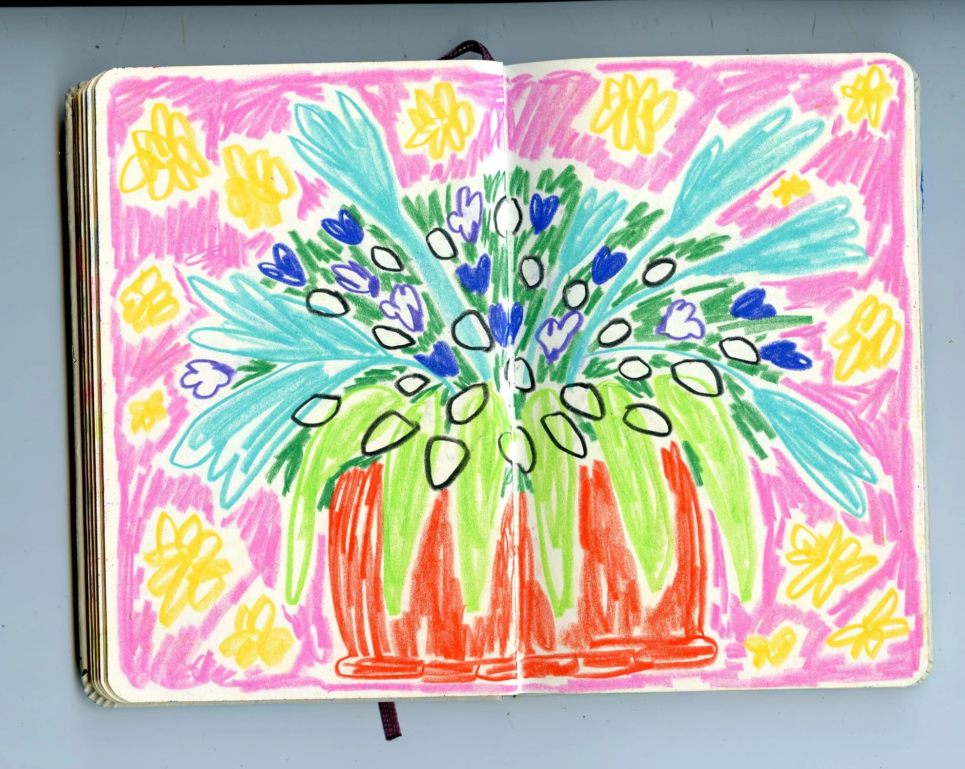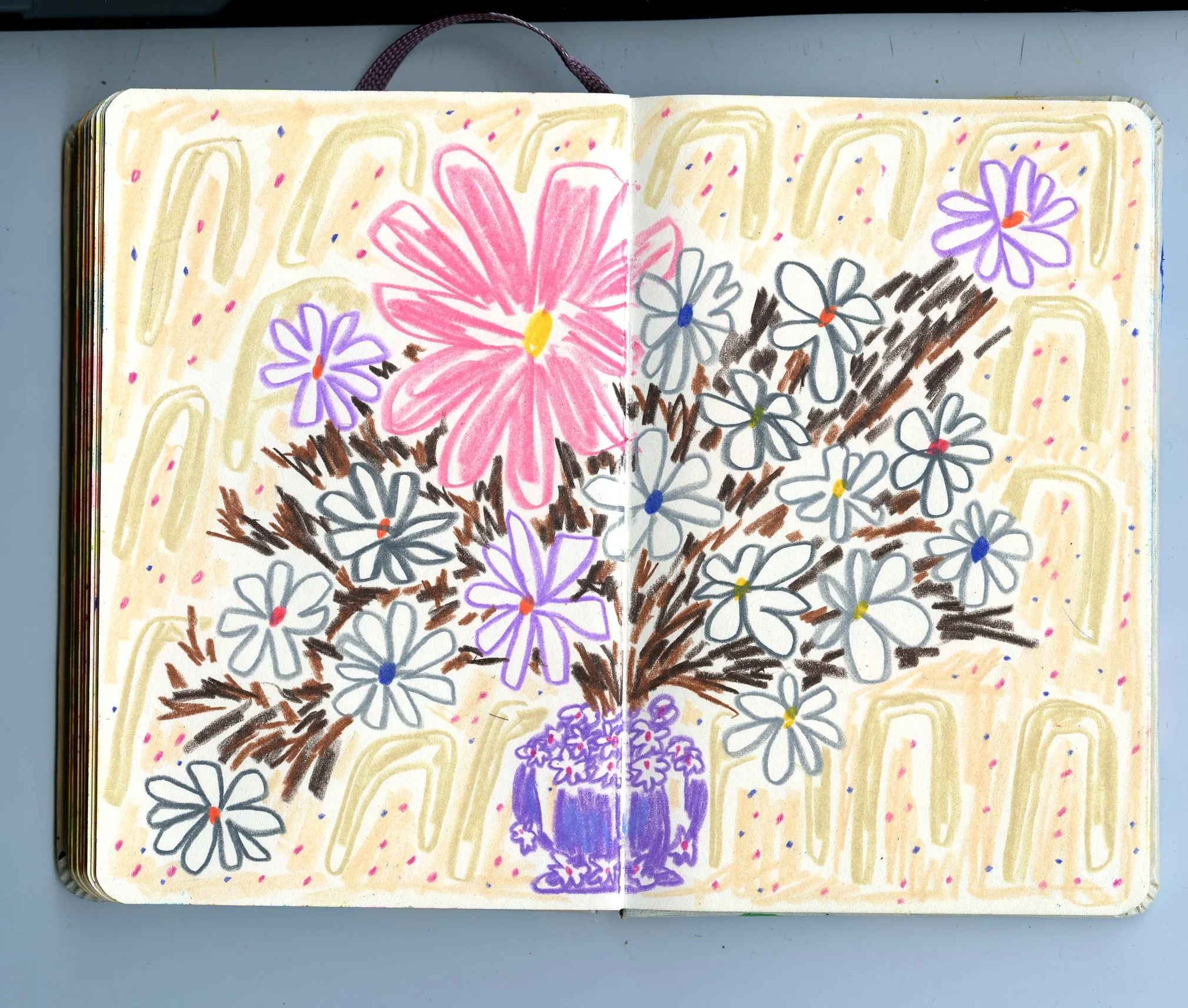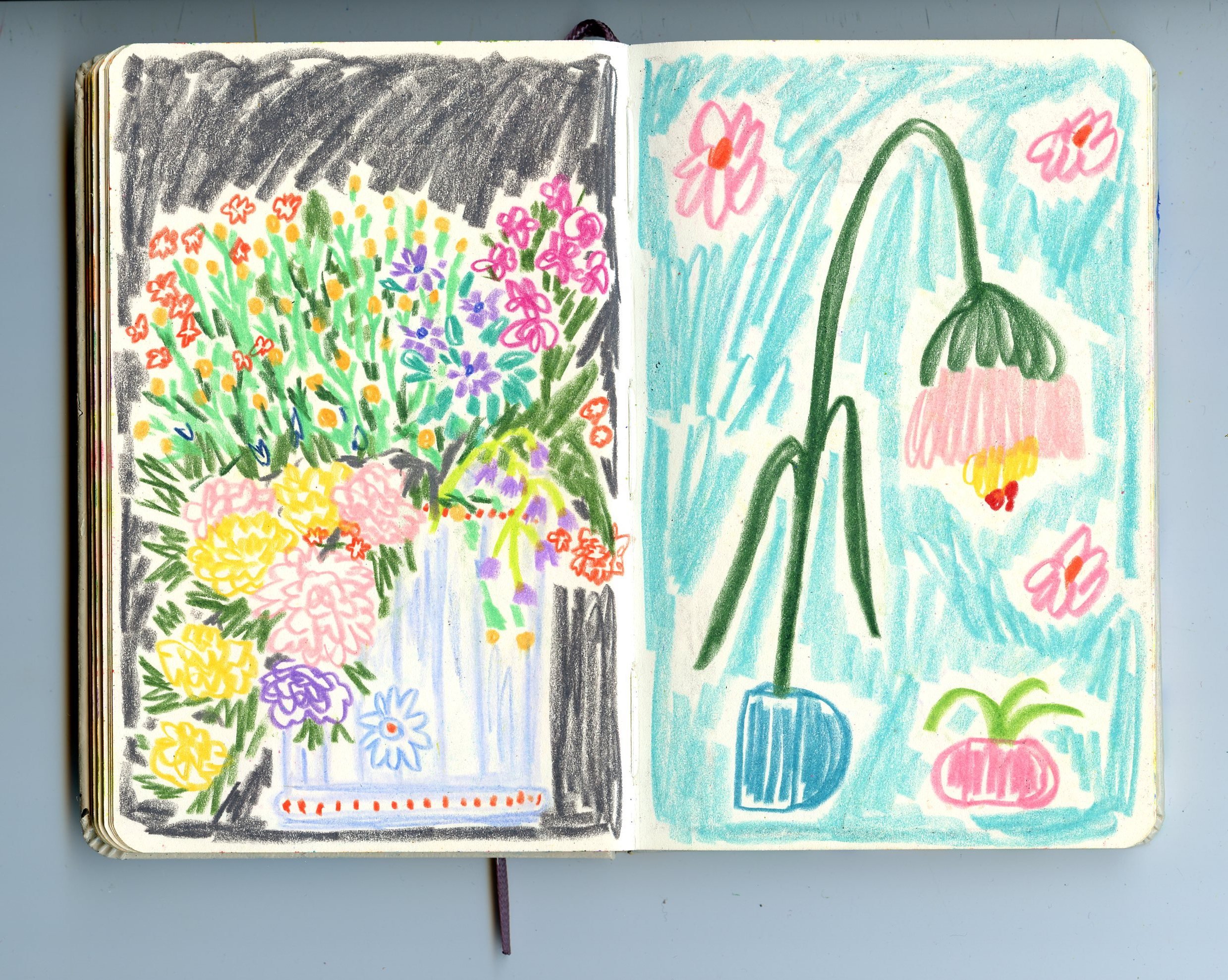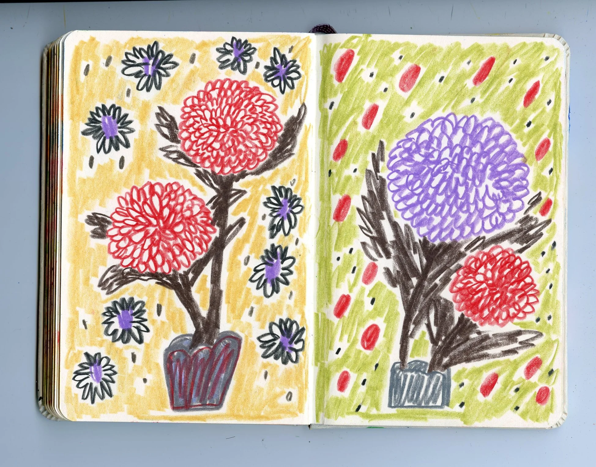 This book is full of my favorite things. I picked out my favorite colors and drew my favorite flowers one by one on blank pages. As I draw using my favorite colors, shapes, and flowers, I enjoyed the time I spent drawing in the notebook, and I slowly fell for the sketchbook that is full of my joyful times. Like this, creativity starts with what you like. If you completely focus on yourself and look deeply into what you like, there is creativity and hidden happiness. Everyone has different ideas and different preferences, so anyone can create their creative happiness. I hope that the happiness I found while drawing on this little notebook will come to you as well.