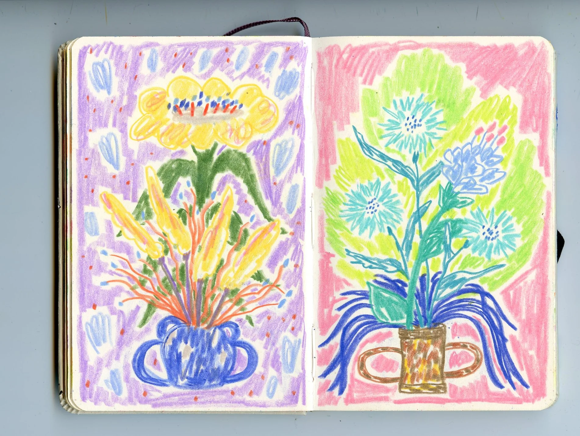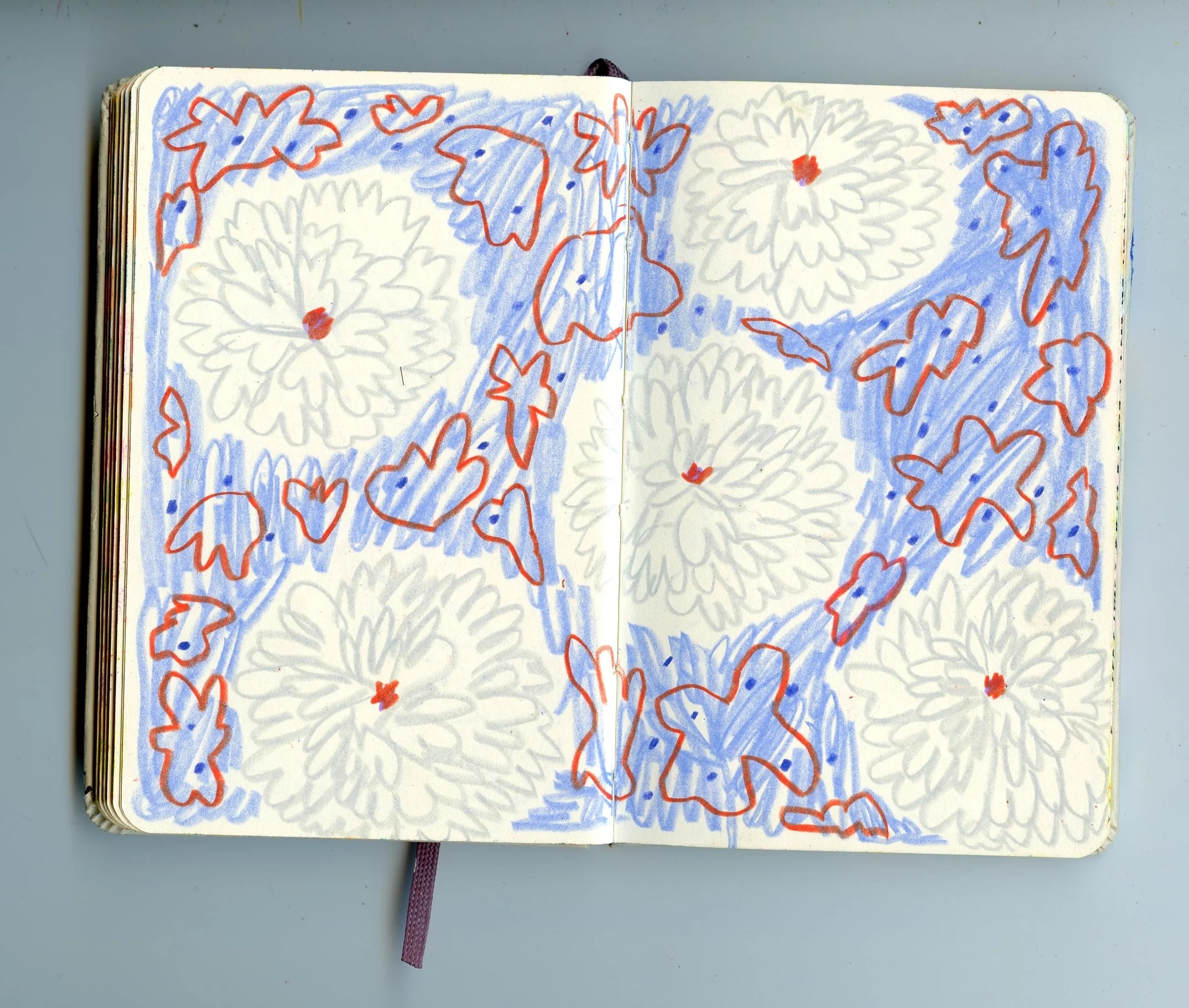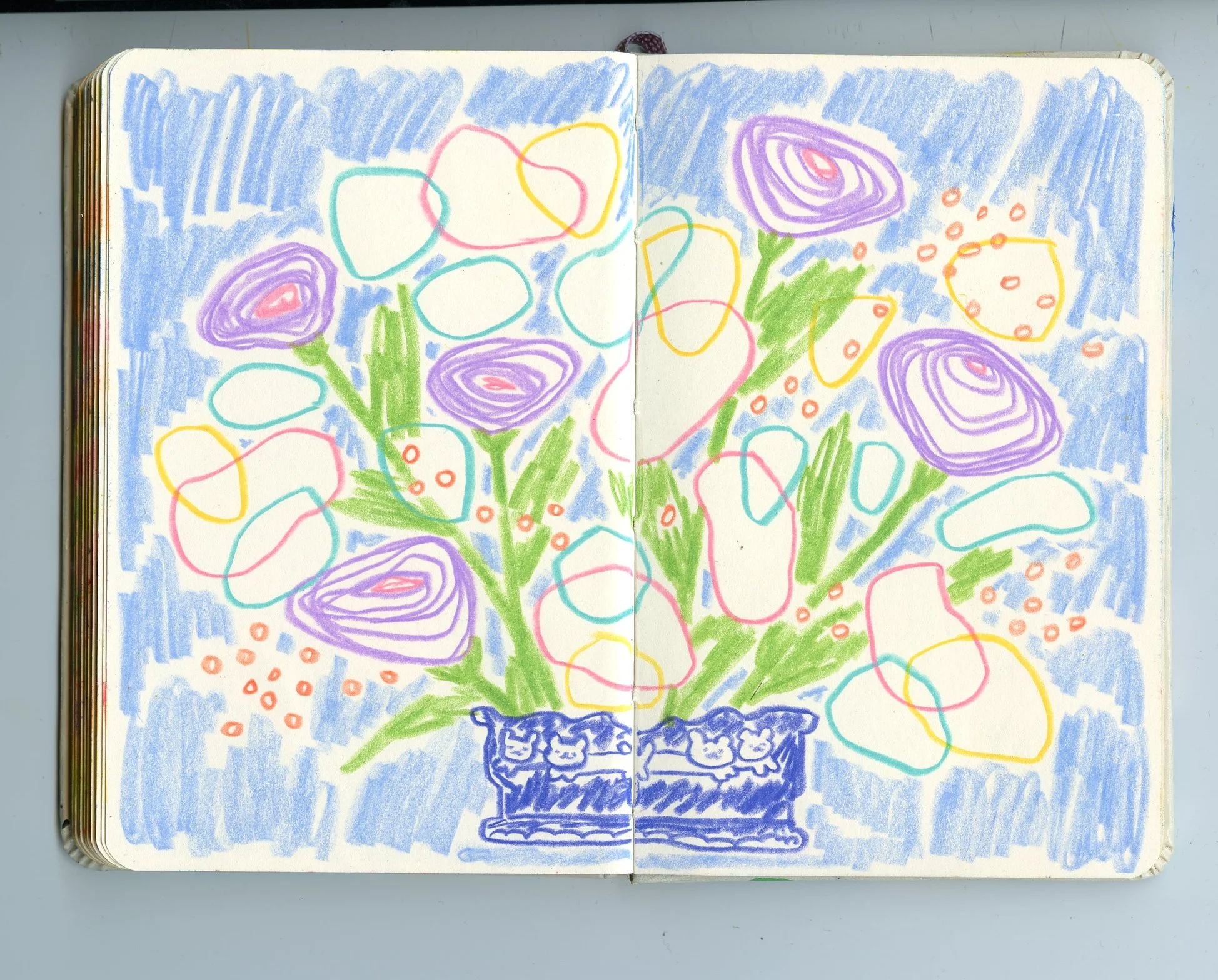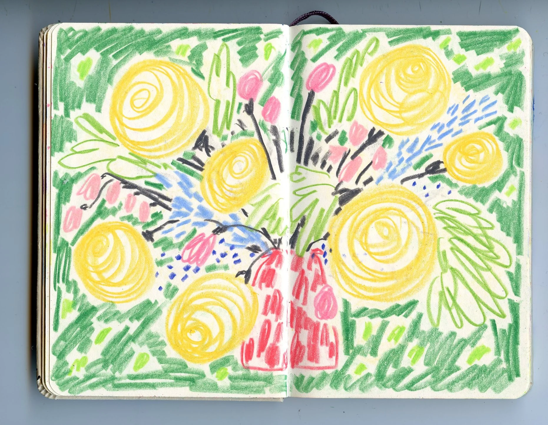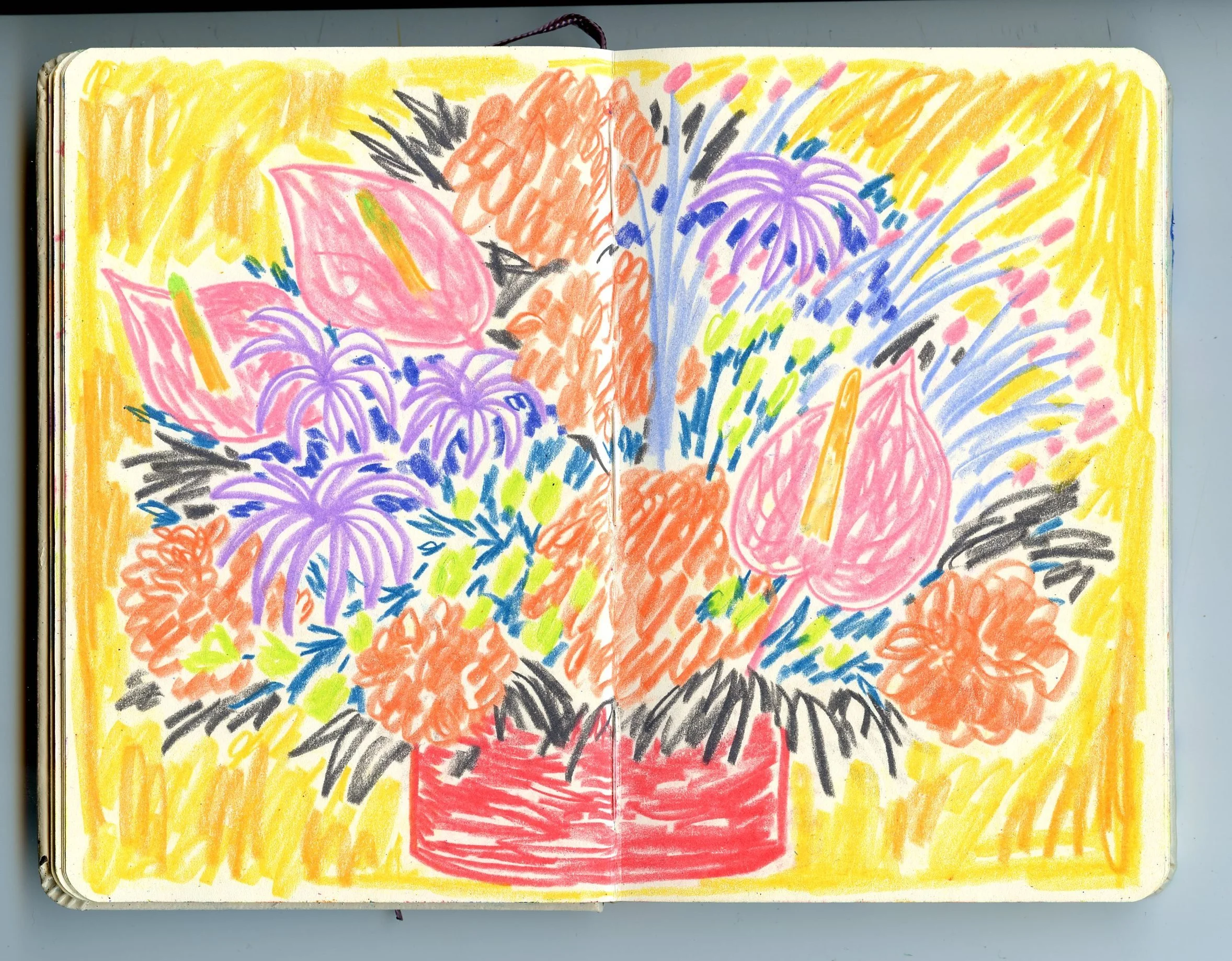 This book is full of my favorite things. I picked out my favorite colors and drew my favorite flowers one by one on blank pages. As I draw using my favorite colors, shapes, and flowers, I enjoyed the time I spent drawing in the notebook, and I slowly fell for the sketchbook that is full of my joyful times. Like this, creativity starts with what you like. If you completely focus on yourself and look deeply into what you like, there is creativity and hidden happiness. Everyone has different ideas and different preferences, so anyone can create their creative happiness. I hope that the happiness I found while drawing on this little notebook will come to you as well.