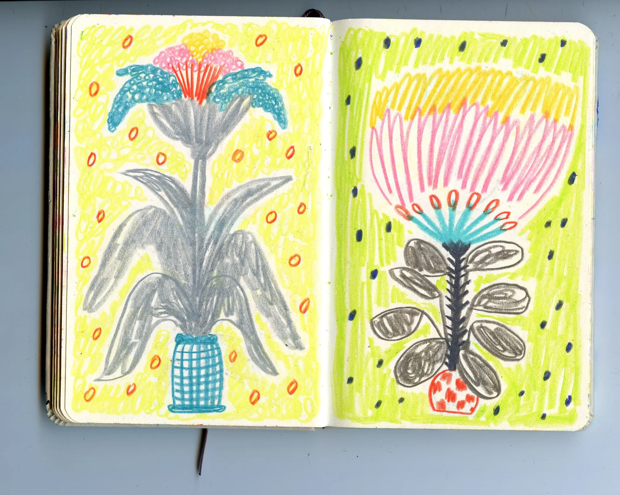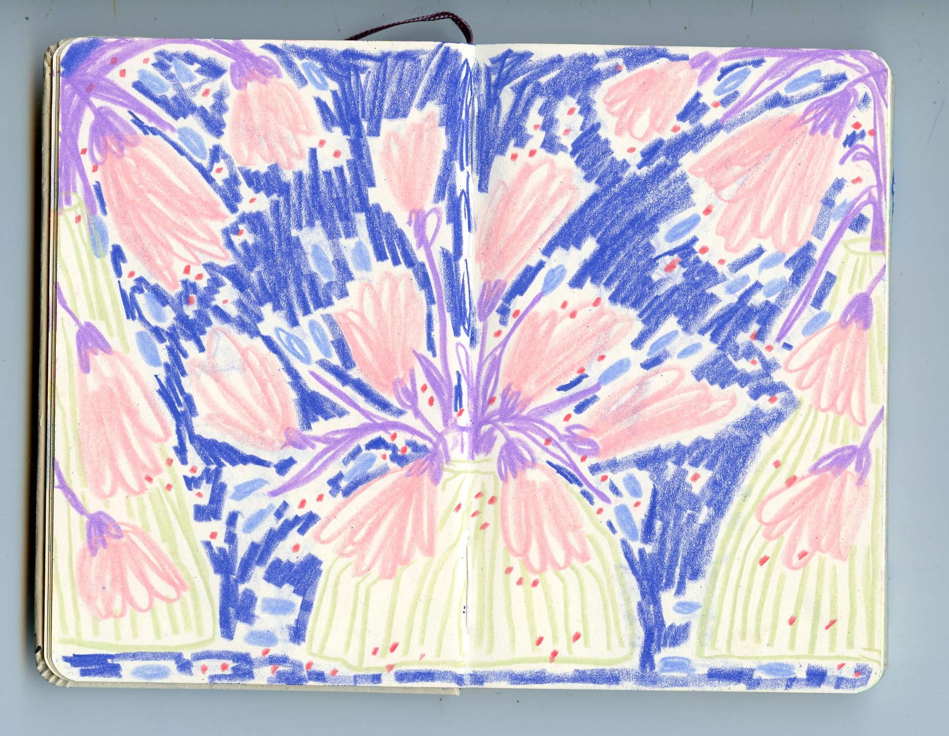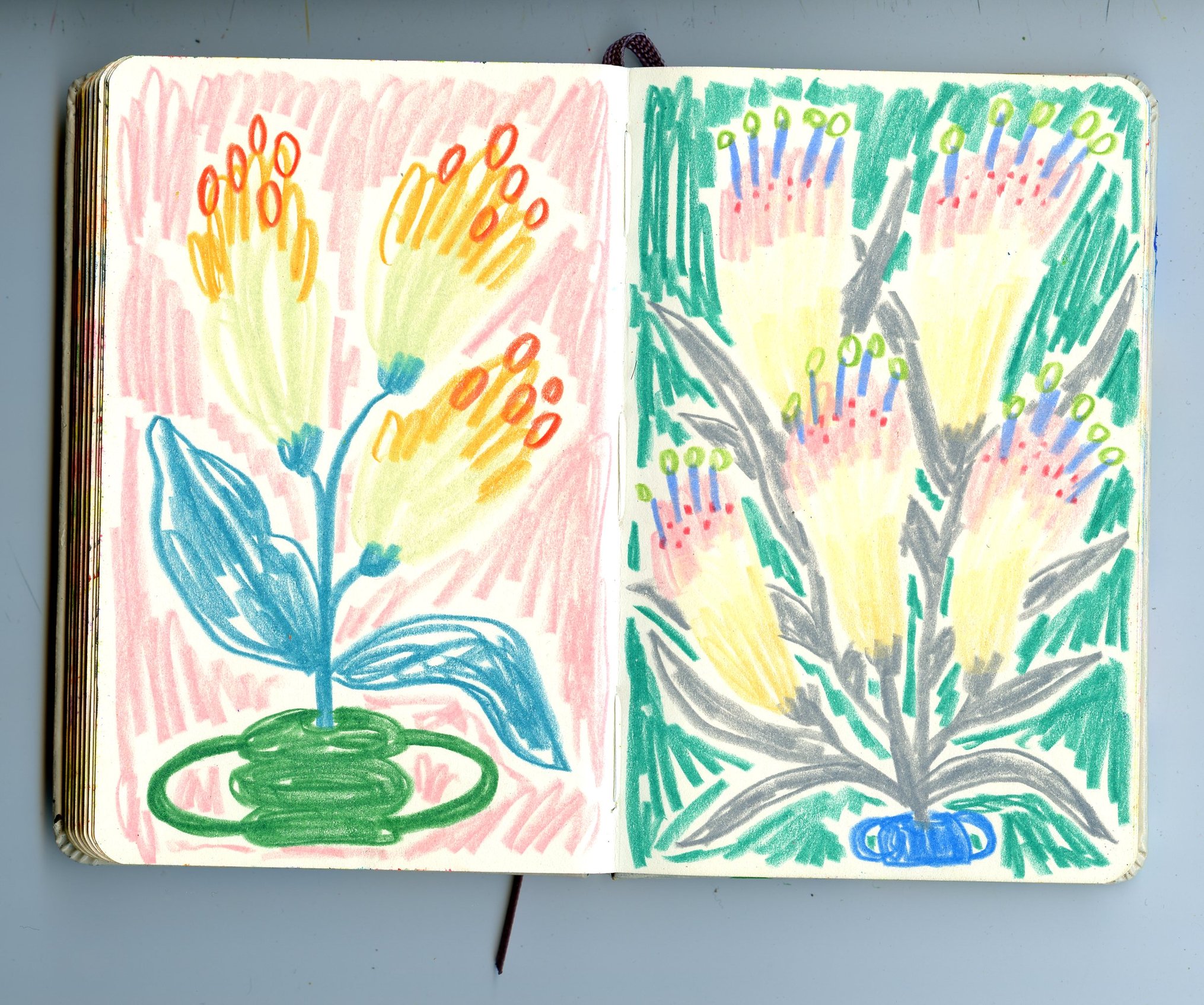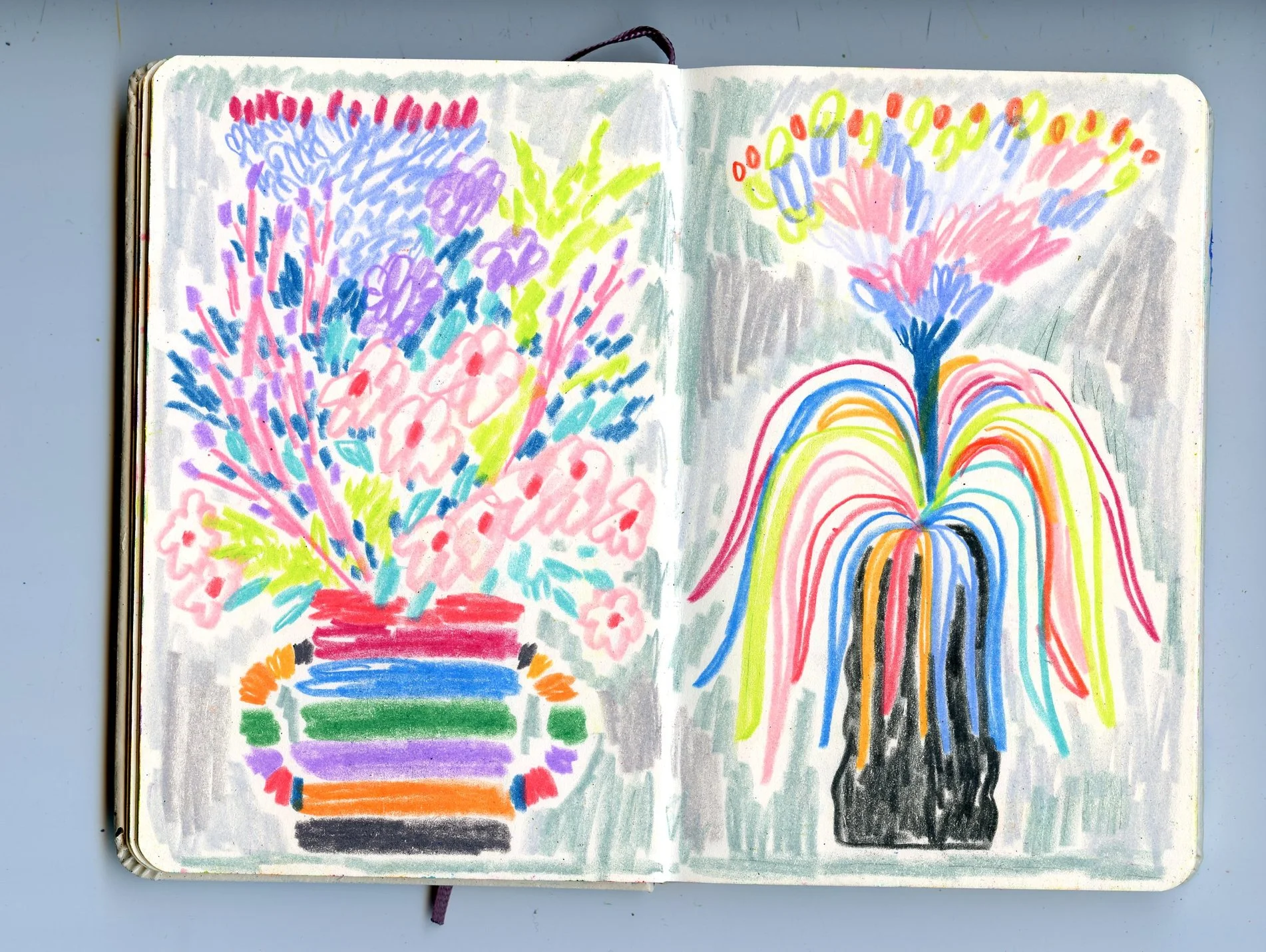 This book is full of my favorite things. I picked out my favorite colors and drew my favorite flowers one by one on blank pages. As I draw using my favorite colors, shapes, and flowers, I enjoyed the time I spent drawing in the notebook, and I slowly fell for the sketchbook that is full of my joyful times. Like this, creativity starts with what you like. If you completely focus on yourself and look deeply into what you like, there is creativity and hidden happiness. Everyone has different ideas and different preferences, so anyone can create their creative happiness. I hope that the happiness I found while drawing on this little notebook will come to you as well.