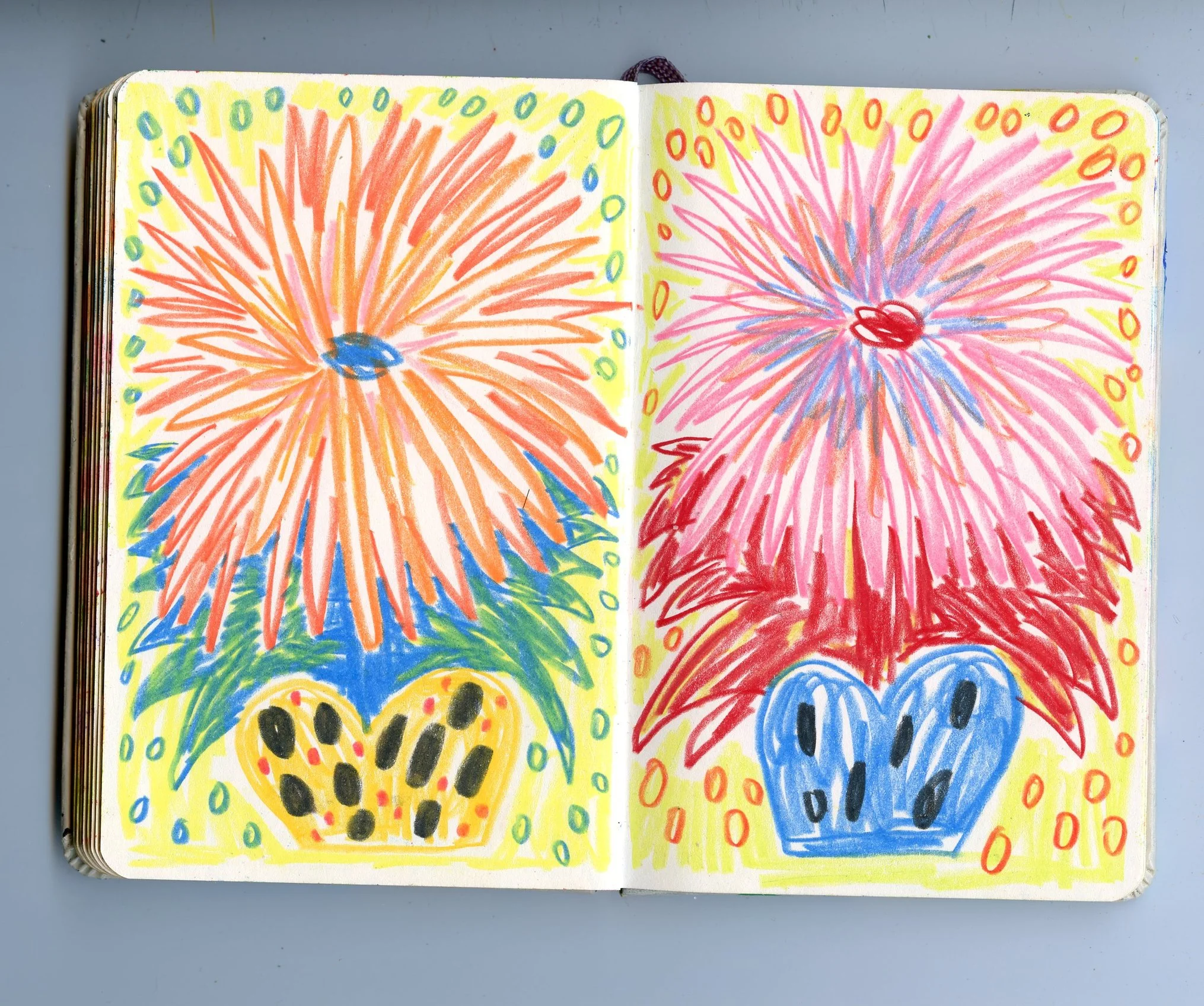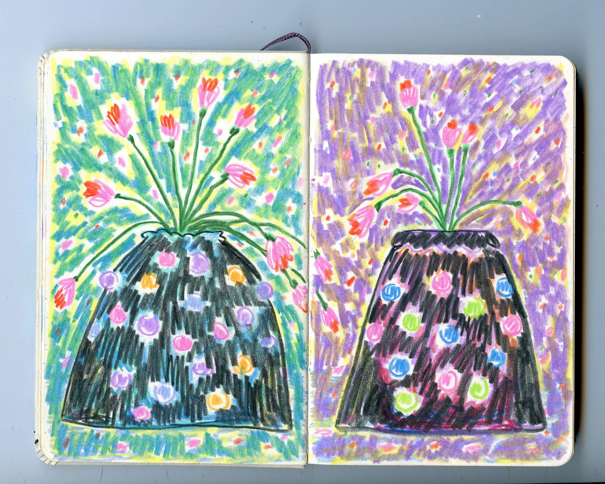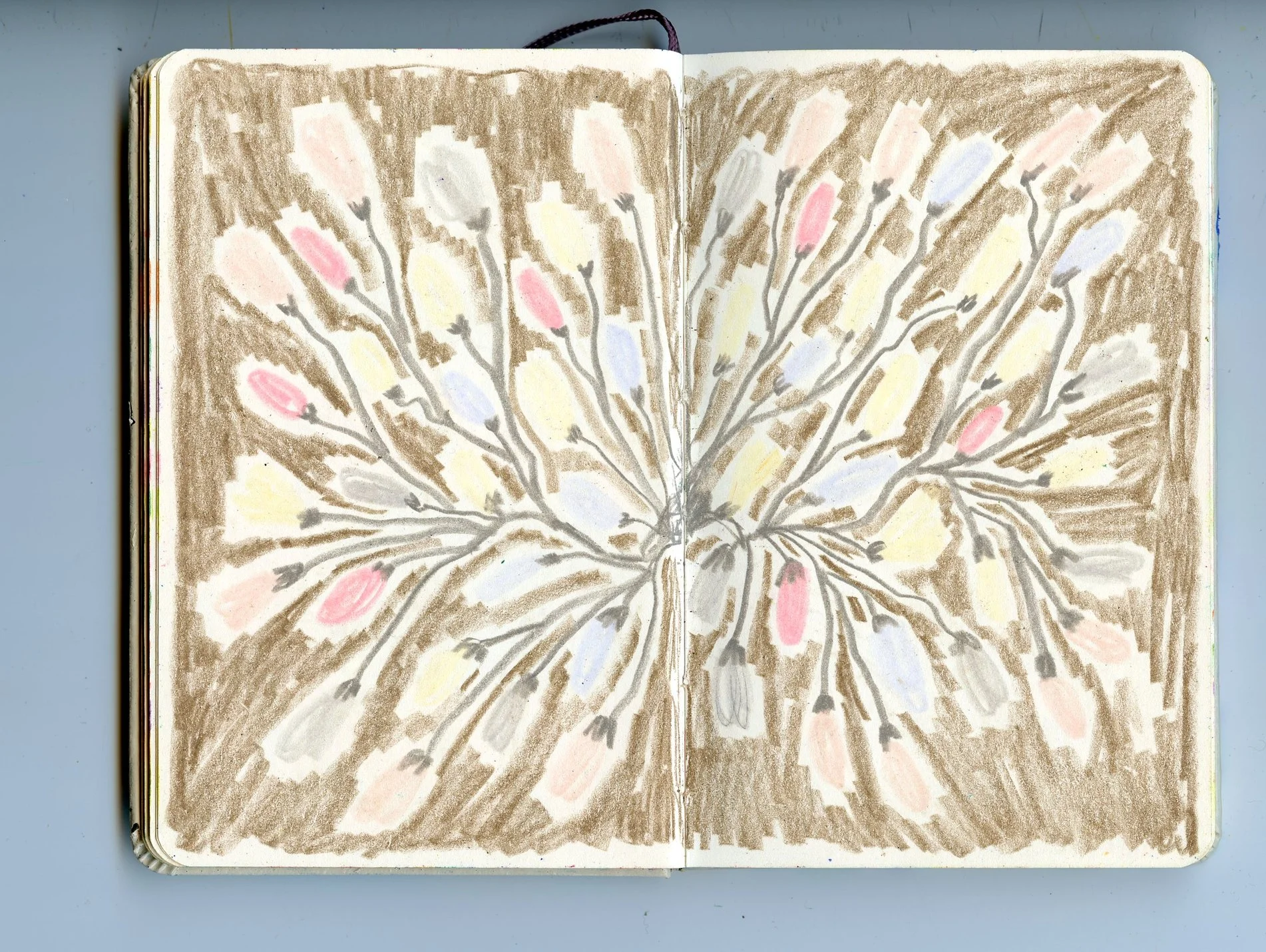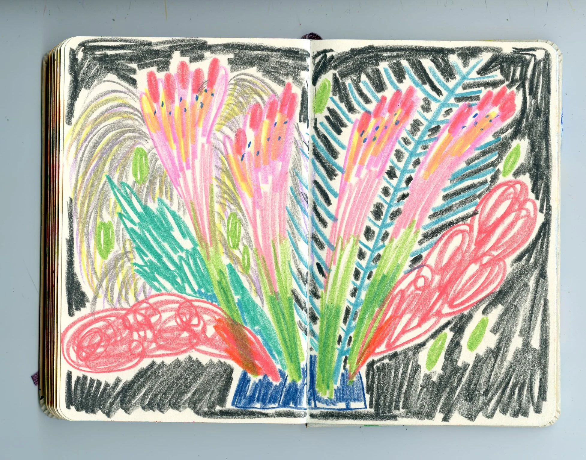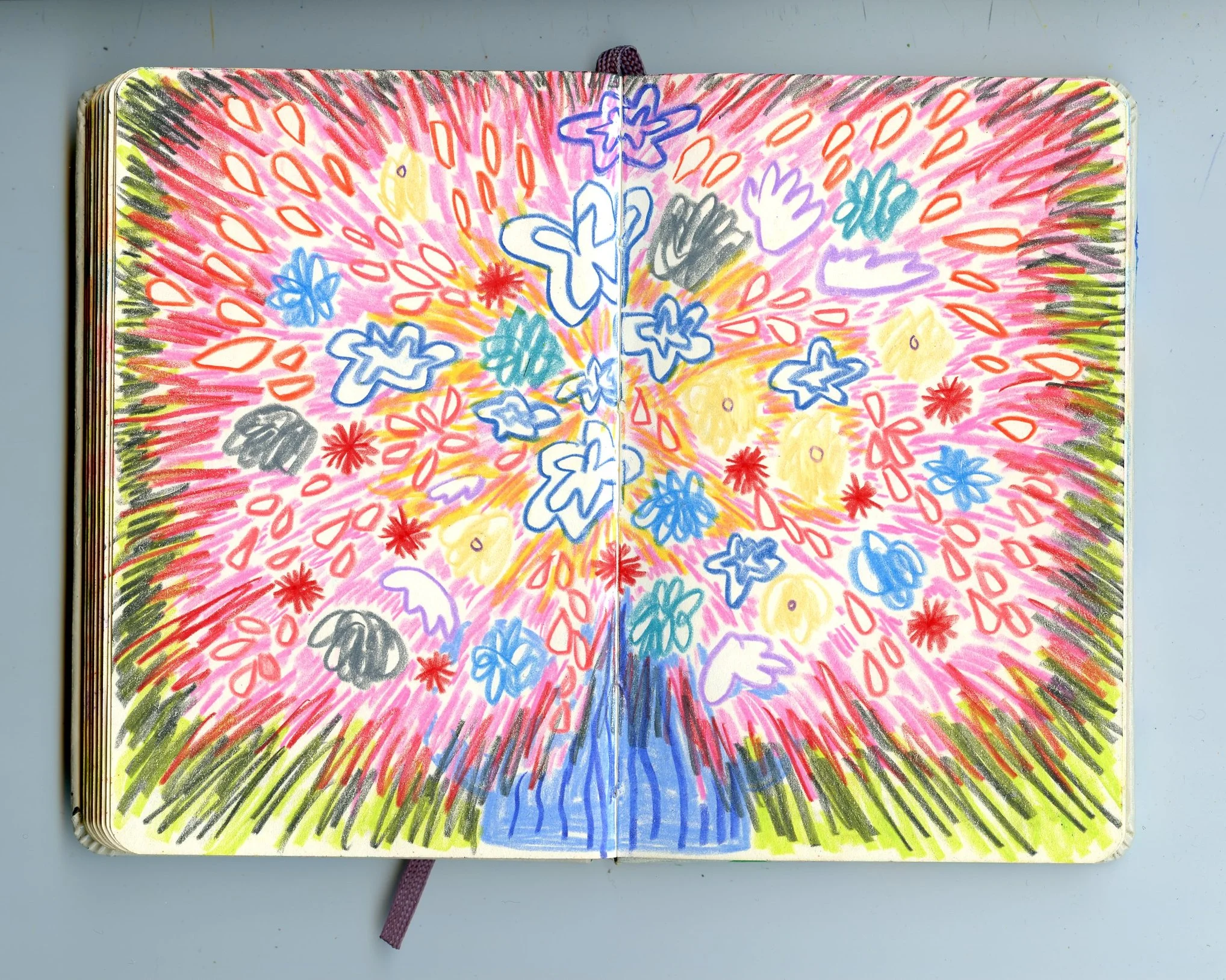 This book is full of my favorite things. I picked out my favorite colors and drew my favorite flowers one by one on blank pages. As I draw using my favorite colors, shapes, and flowers, I enjoyed the time I spent drawing in the notebook, and I slowly fell for the sketchbook that is full of my joyful times. Like this, creativity starts with what you like. If you completely focus on yourself and look deeply into what you like, there is creativity and hidden happiness. Everyone has different ideas and different preferences, so anyone can create their creative happiness. I hope that the happiness I found while drawing on this little notebook will come to you as well.