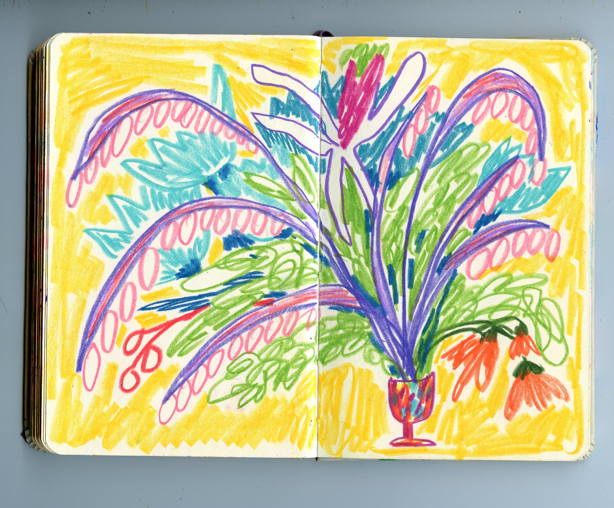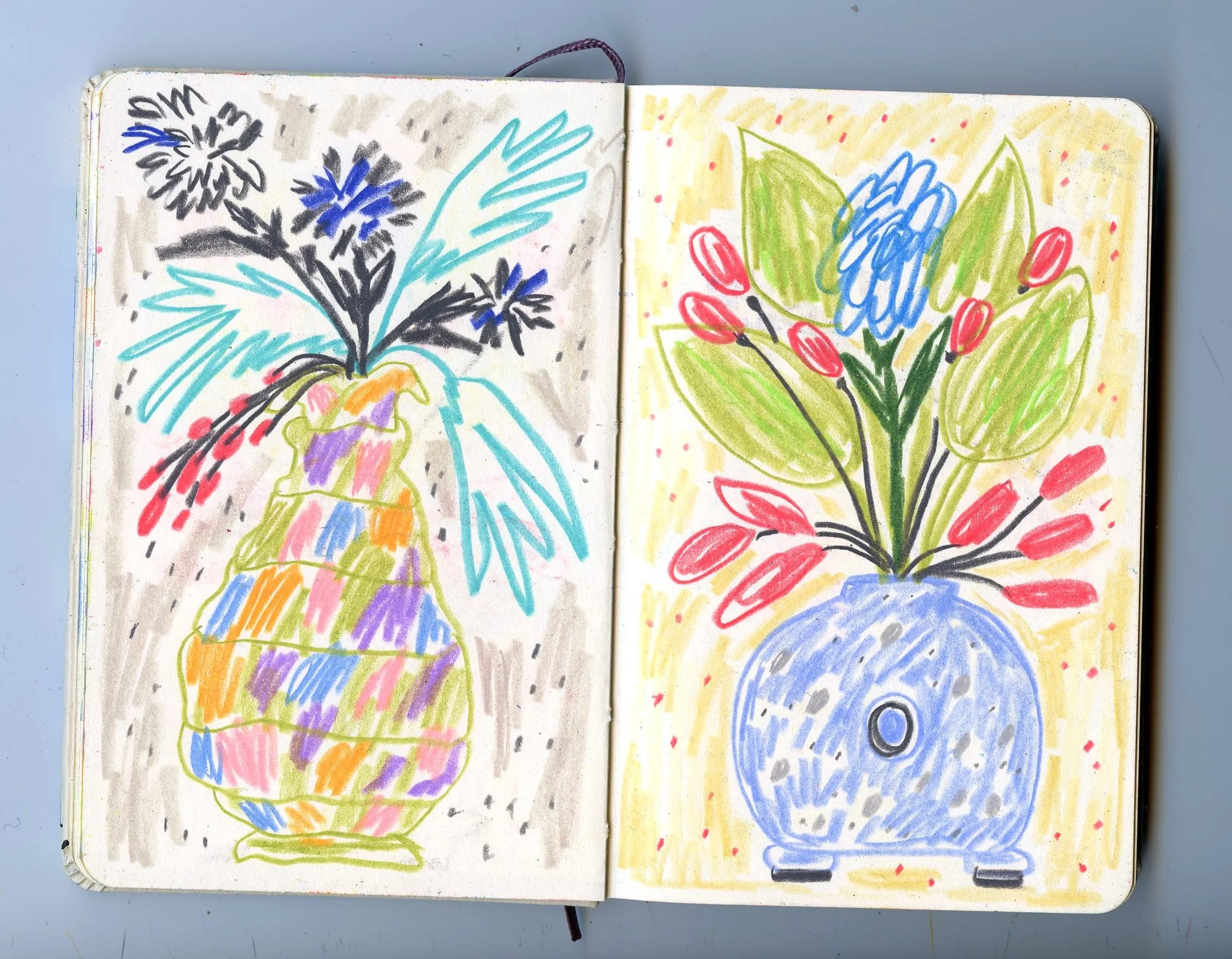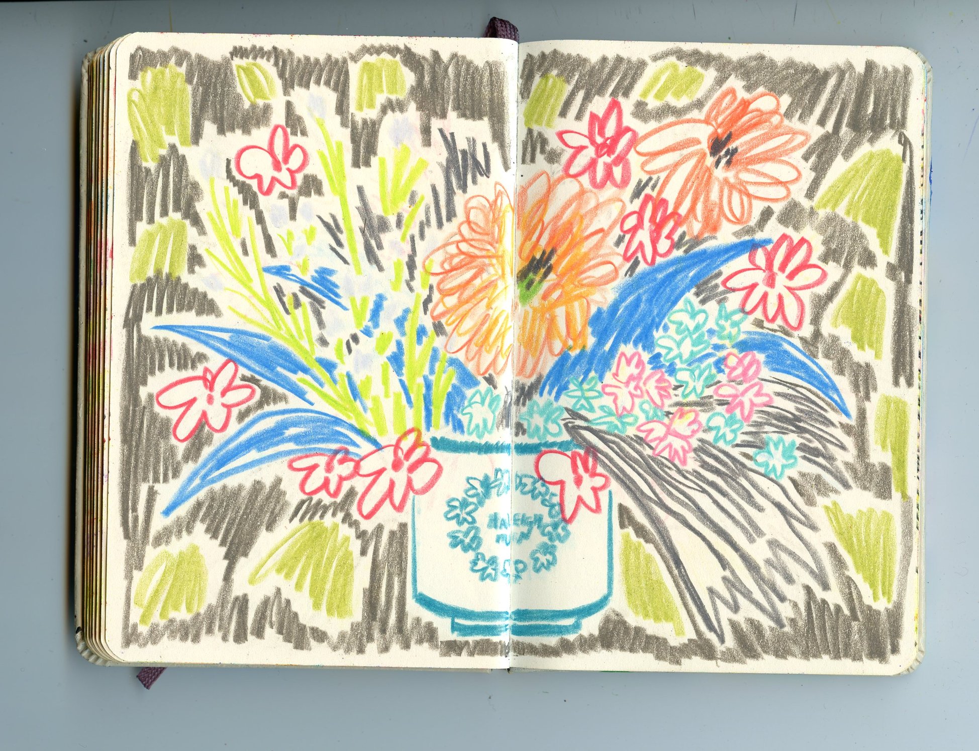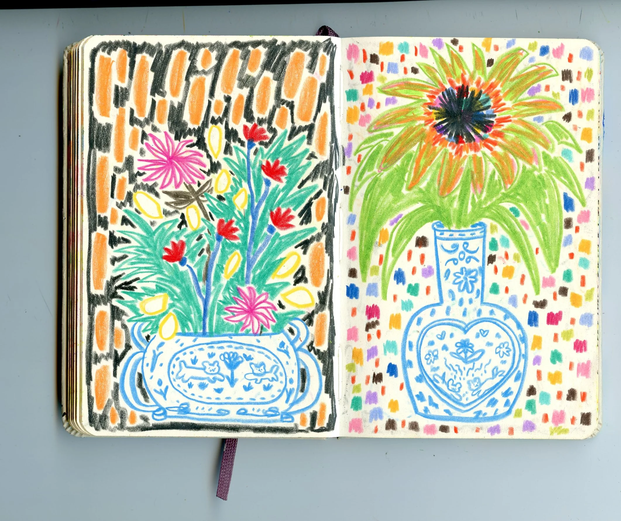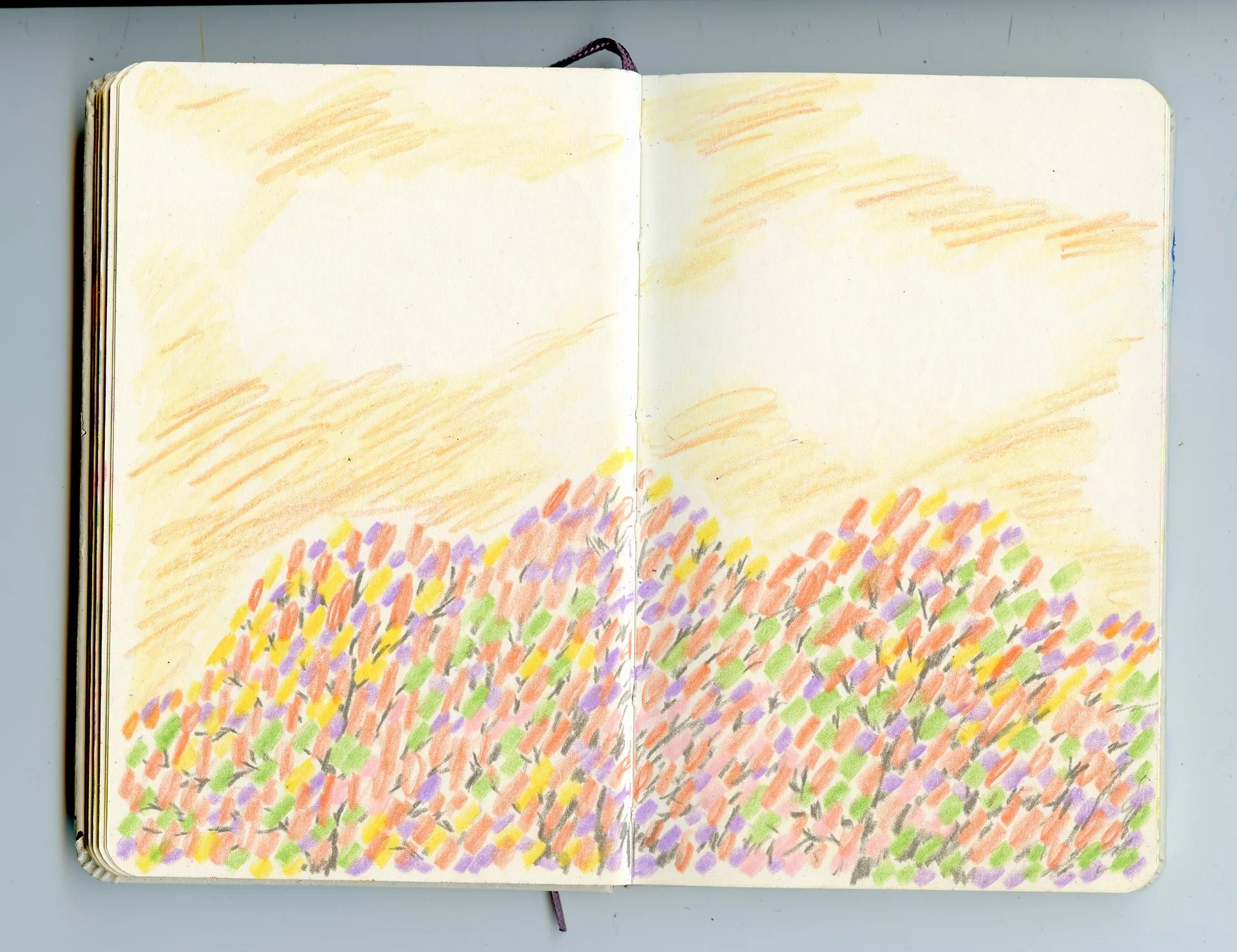 This book is full of my favorite things. I picked out my favorite colors and drew my favorite flowers one by one on blank pages. As I draw using my favorite colors, shapes, and flowers, I enjoyed the time I spent drawing in the notebook, and I slowly fell for the sketchbook that is full of my joyful times. Like this, creativity starts with what you like. If you completely focus on yourself and look deeply into what you like, there is creativity and hidden happiness. Everyone has different ideas and different preferences, so anyone can create their creative happiness. I hope that the happiness I found while drawing on this little notebook will come to you as well.